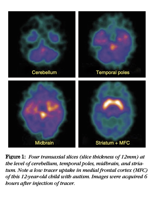 本研究は、自閉症児におけるSERTとドーパミントランスポーター(DAT)の結合能をSPECTで測定し、比較群と比較することを目的としました。